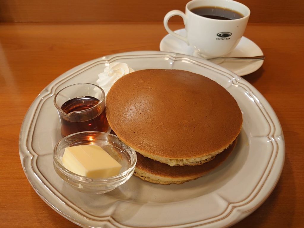 板橋区大山の「珈琲館 大山店」で、トラディッショナル・ホットケーキ ホイップクリーム付き2枚と珈琲館ブレンドを。
