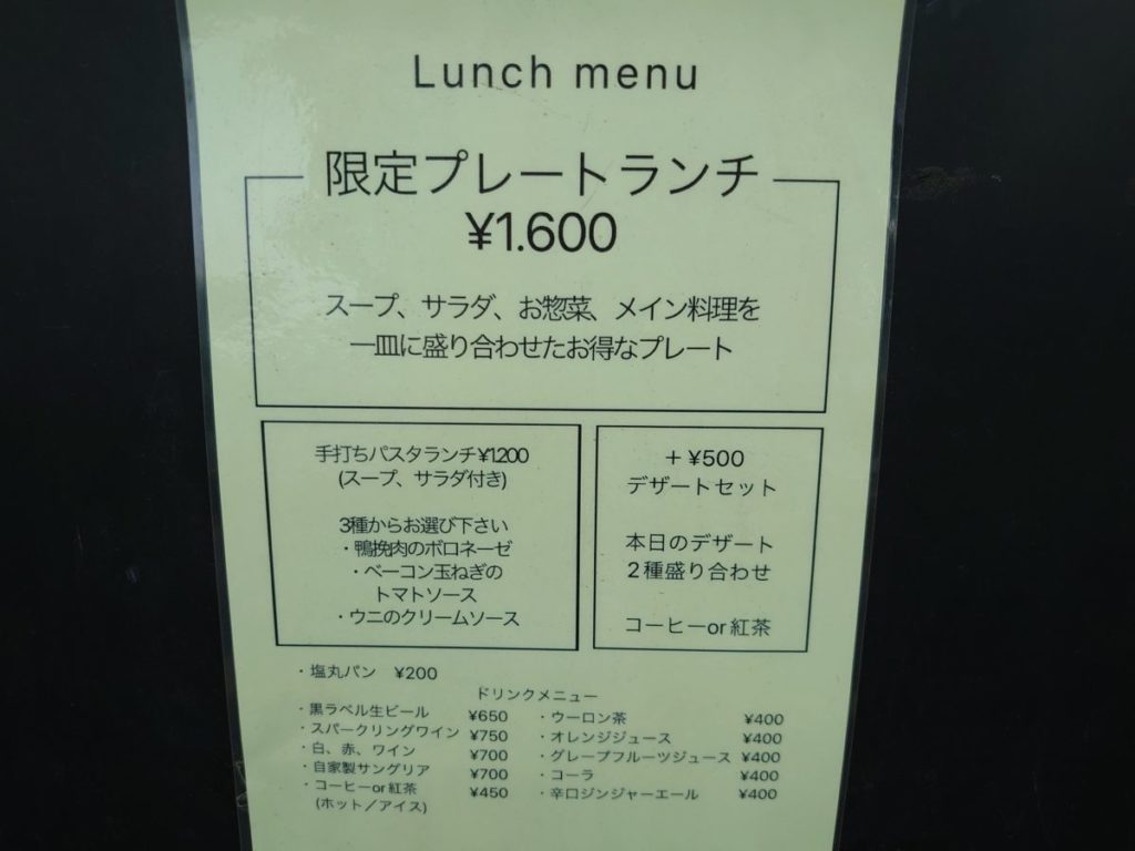ランチメニューは、今回目当ての限定プレートランチと、手打ちパスタランチ3種。