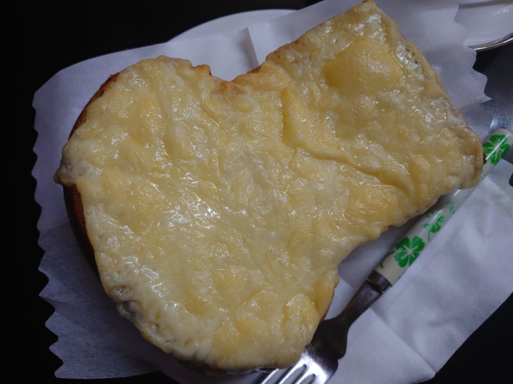 チーズトーストが焼き上がるまで10分くらい時間が掛かるとの案内がありました。