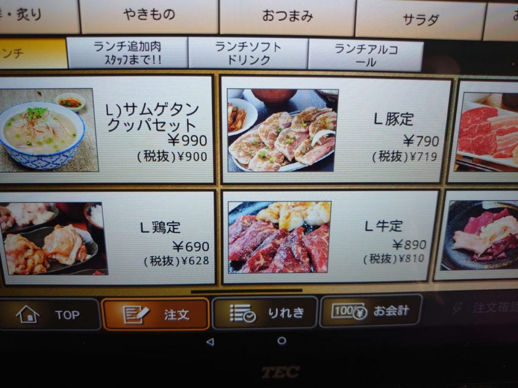 ランチは焼肉も丼も定食メニューが充実していました。