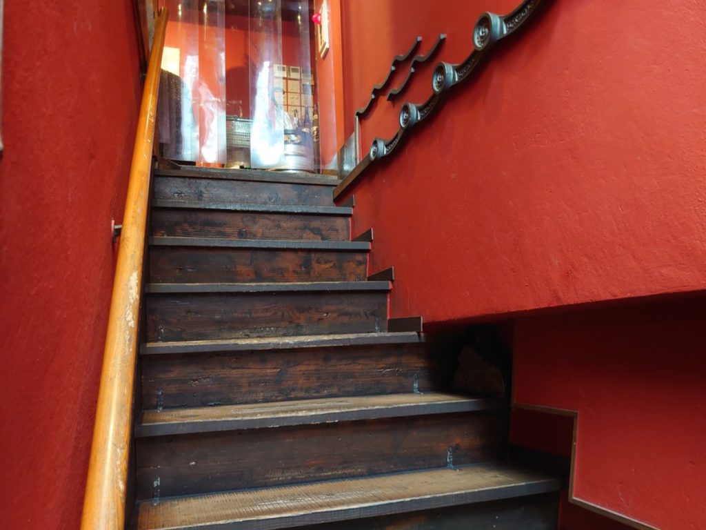 入口は1階ですが、お店は階段を上がった2階です。