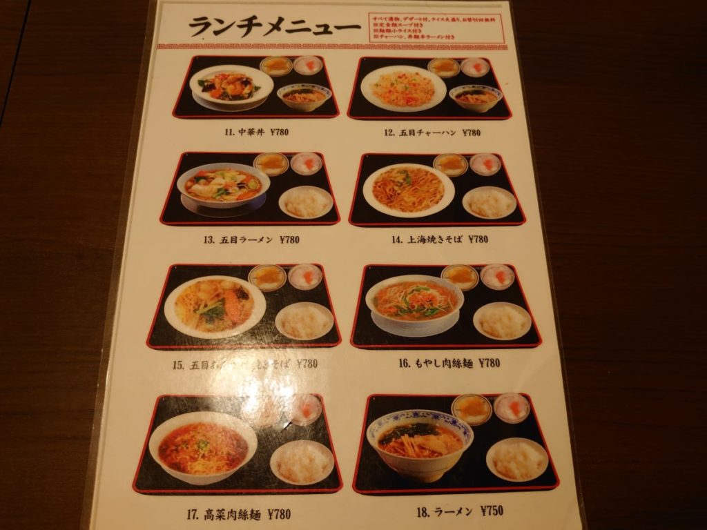 定食はスープ付き、麺類は小ライス付き、チャーハンと丼物は半ラーメン付き。