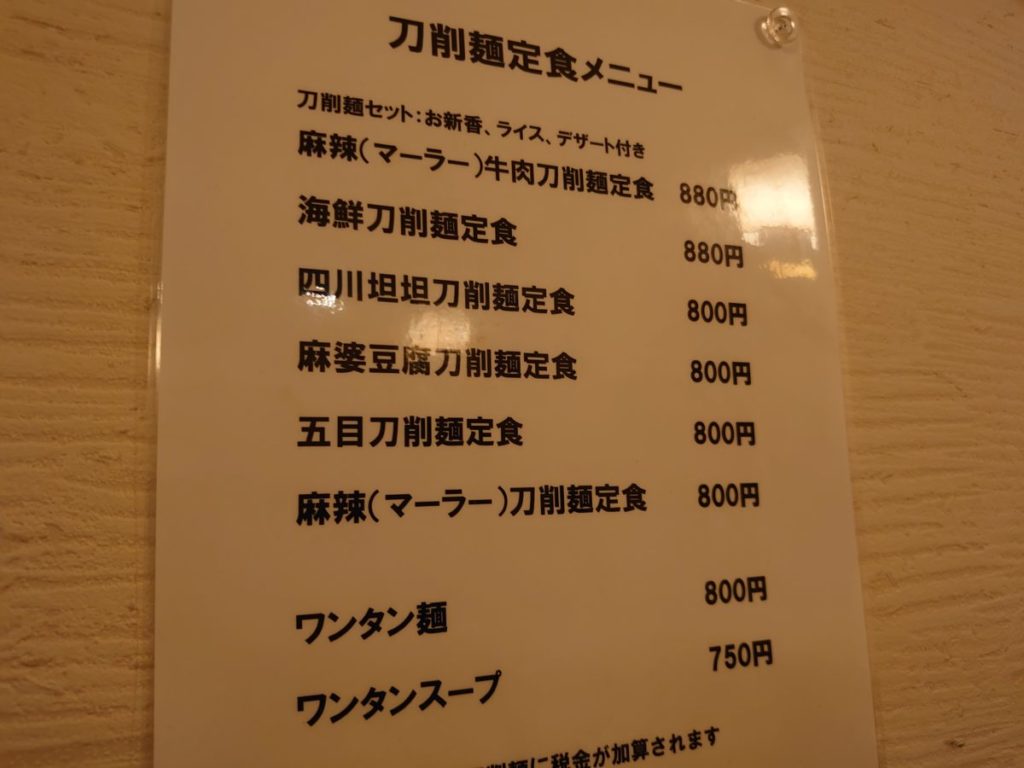 辛いものがあまり得意ではないため、辛そうにないと思った海鮮刀削麺定食を注文しました。