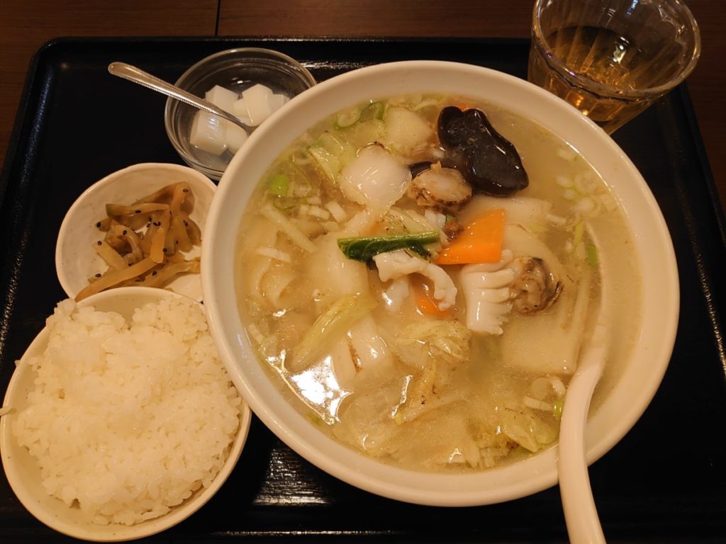 ハッピーロード商店街の「本格中華料理 沸騰」で、ランチに海鮮刀削麺定食を。