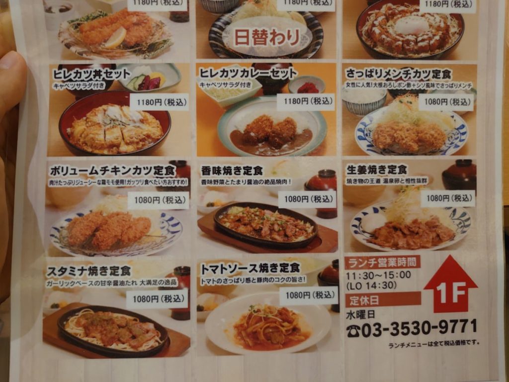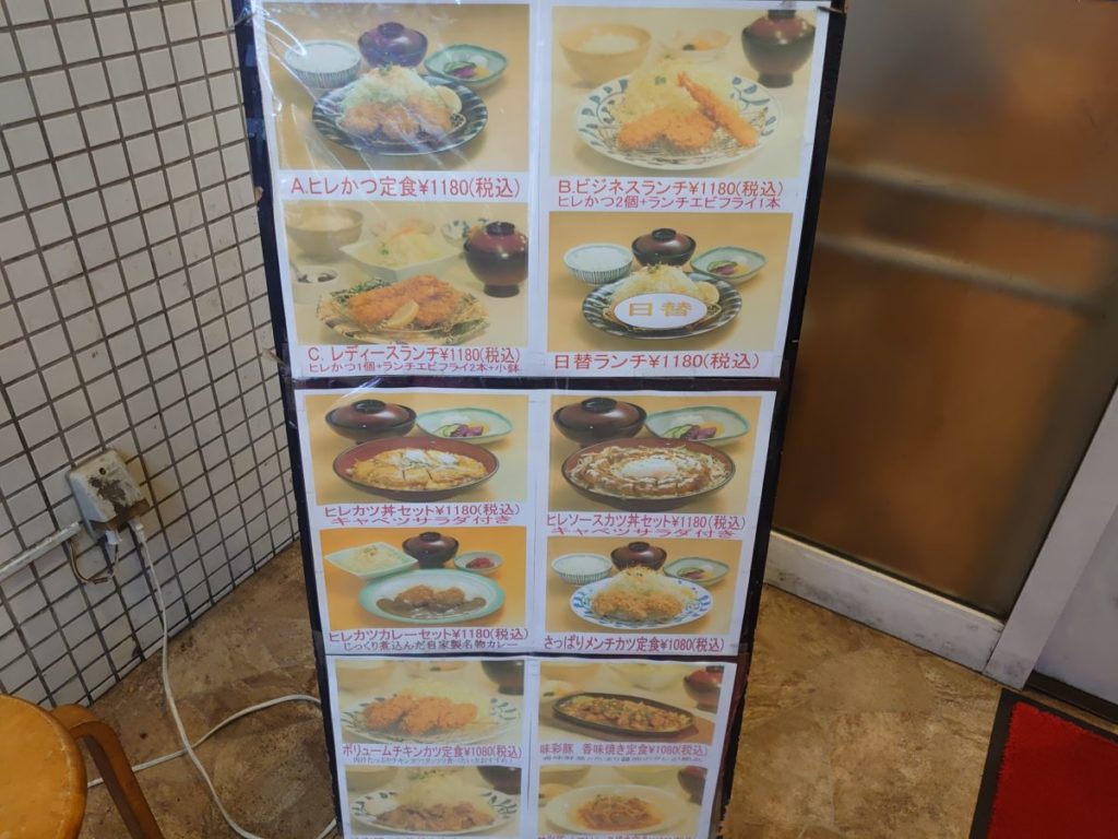 ランチメニューは、ヒレかつ定食をはじめ、ヒレカツ丼、ヒレカツカレー、メンチカツ、チキンカツといったカツ料理がメイン。