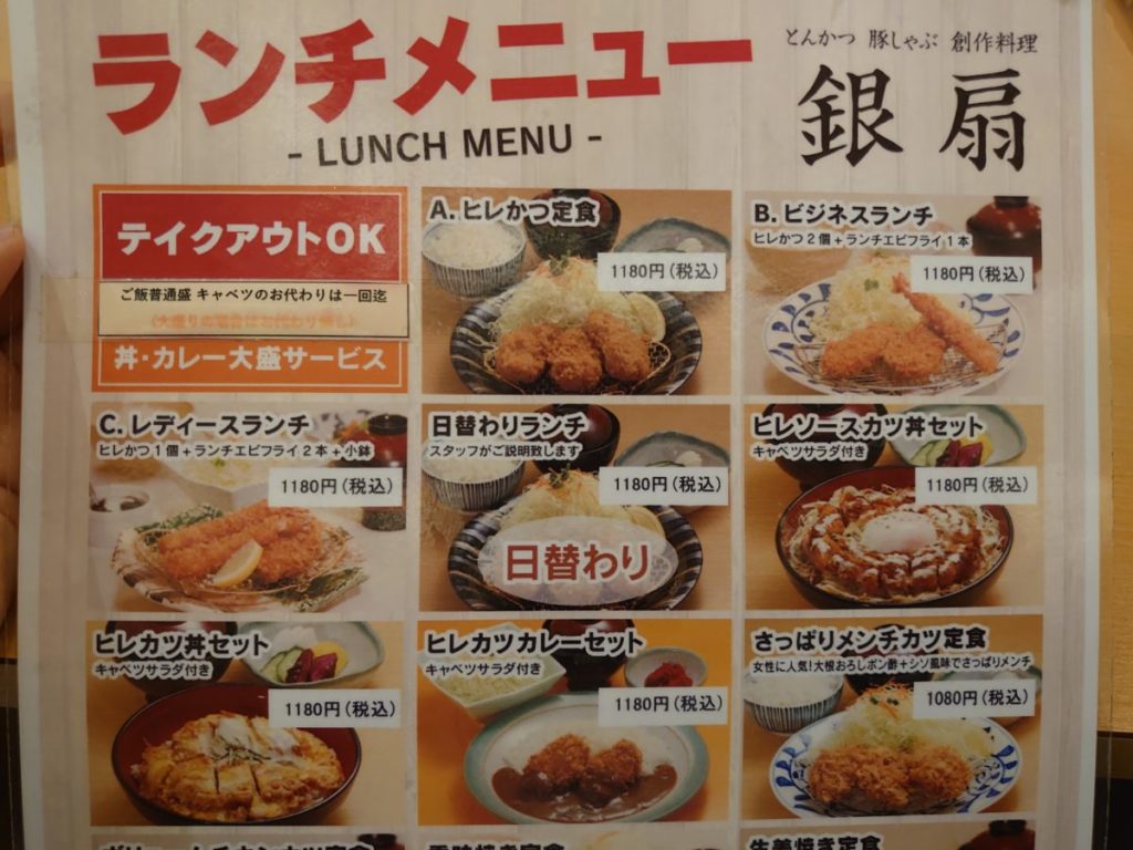 ささっとランチを済ませなければいけない機会に職場近くの銀扇を再訪しました。