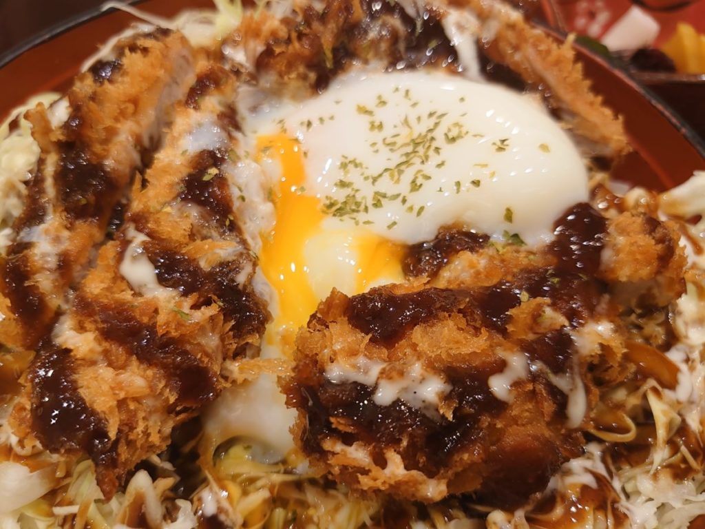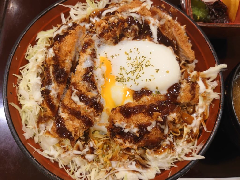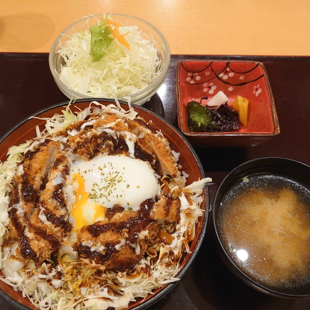 ヒレかつやメンチカツ等、ランチメニューが豊富です。ヒレかつ丼やヒレソースカツ丼等の丼メニューも。トッピングされている温泉卵に惹かれ、ヒレソースカツ丼を注文しました。