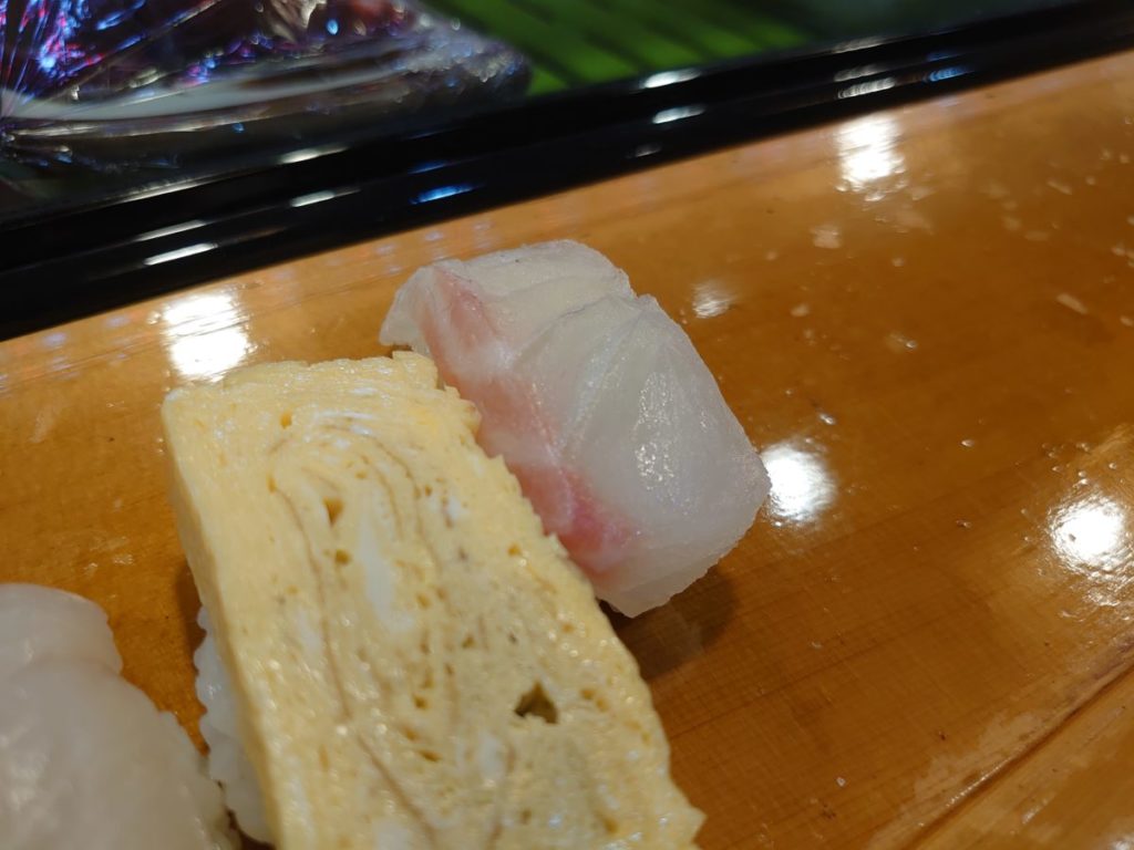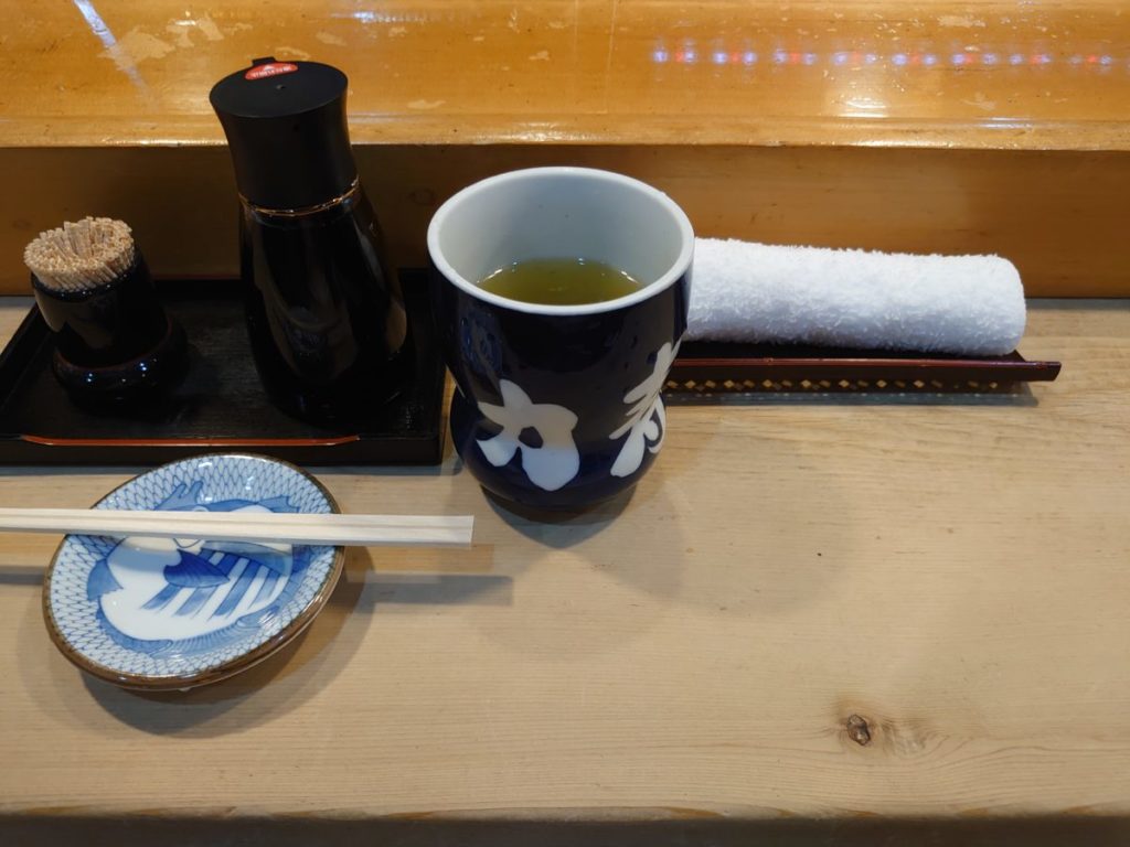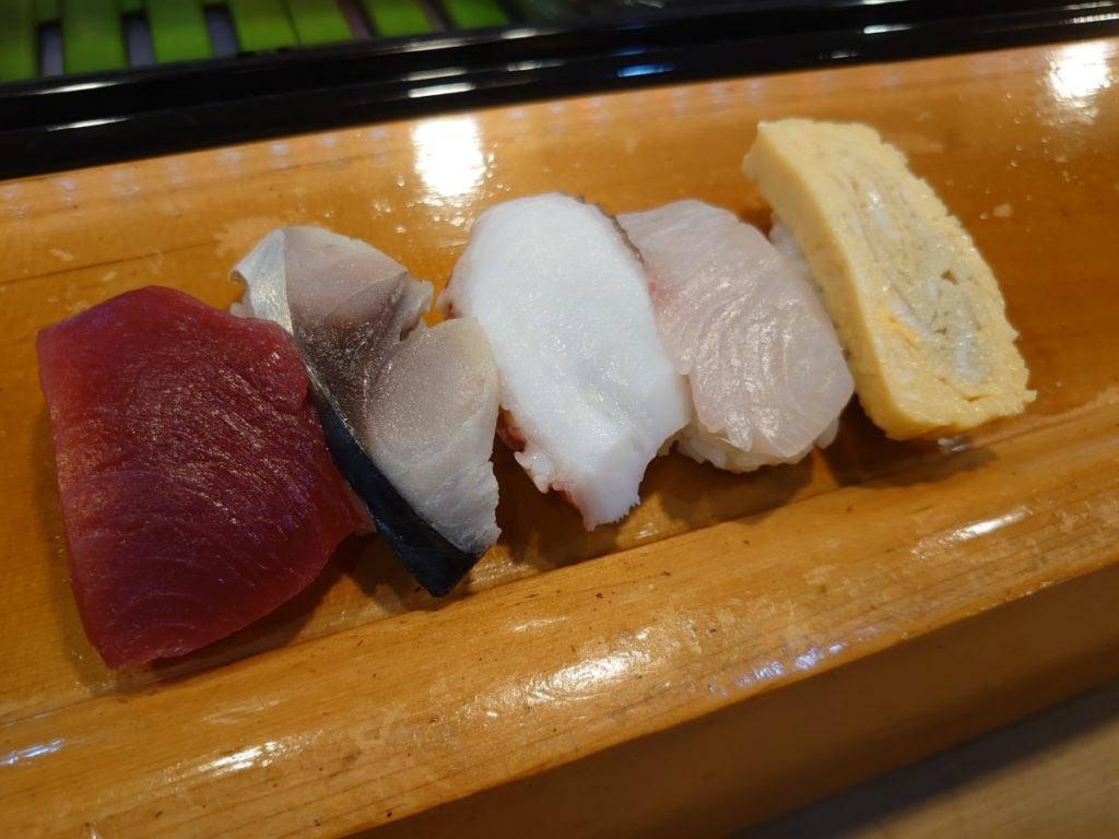 職人さんがカウンター前に備え付けられた台に、握りたてのにぎりをポンポンとのせてくれます。