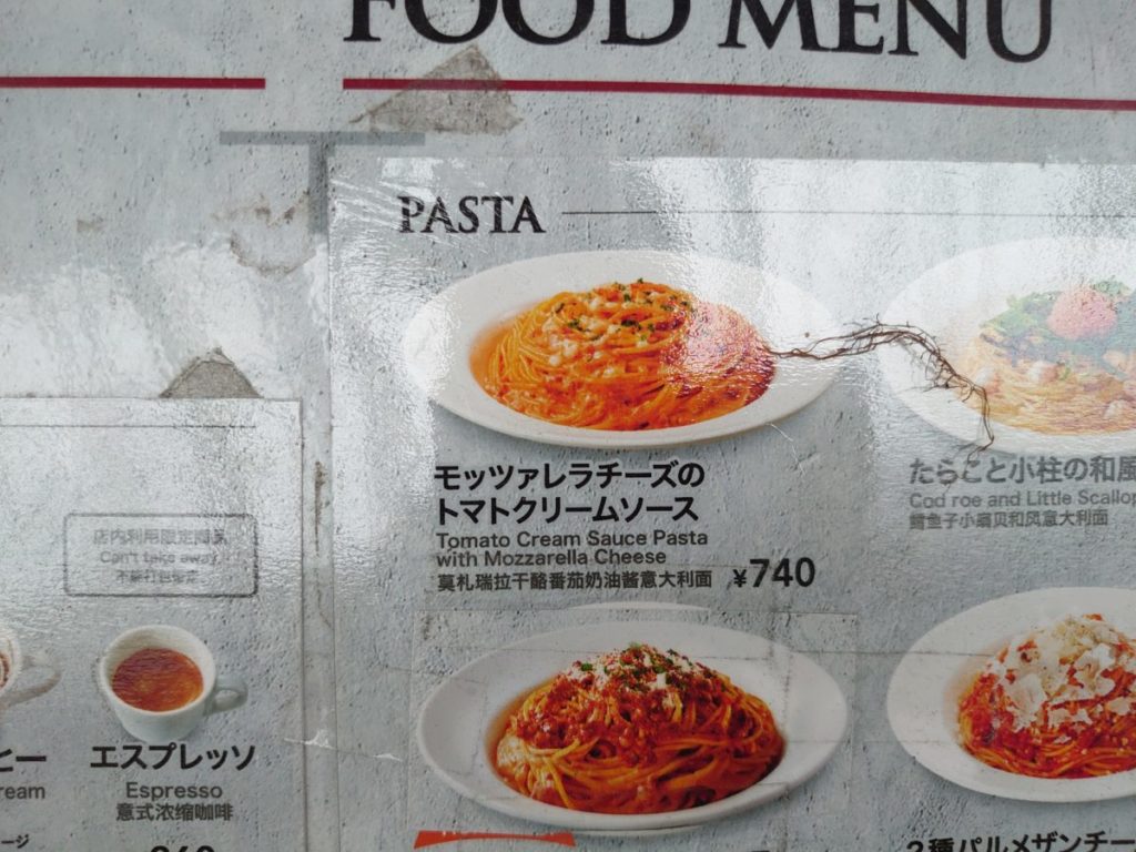 イタリアントマトに来たんだからトマトメニューを食べなきゃと思い、モッツァレラチーズのトマトクリームソースを注文しました。