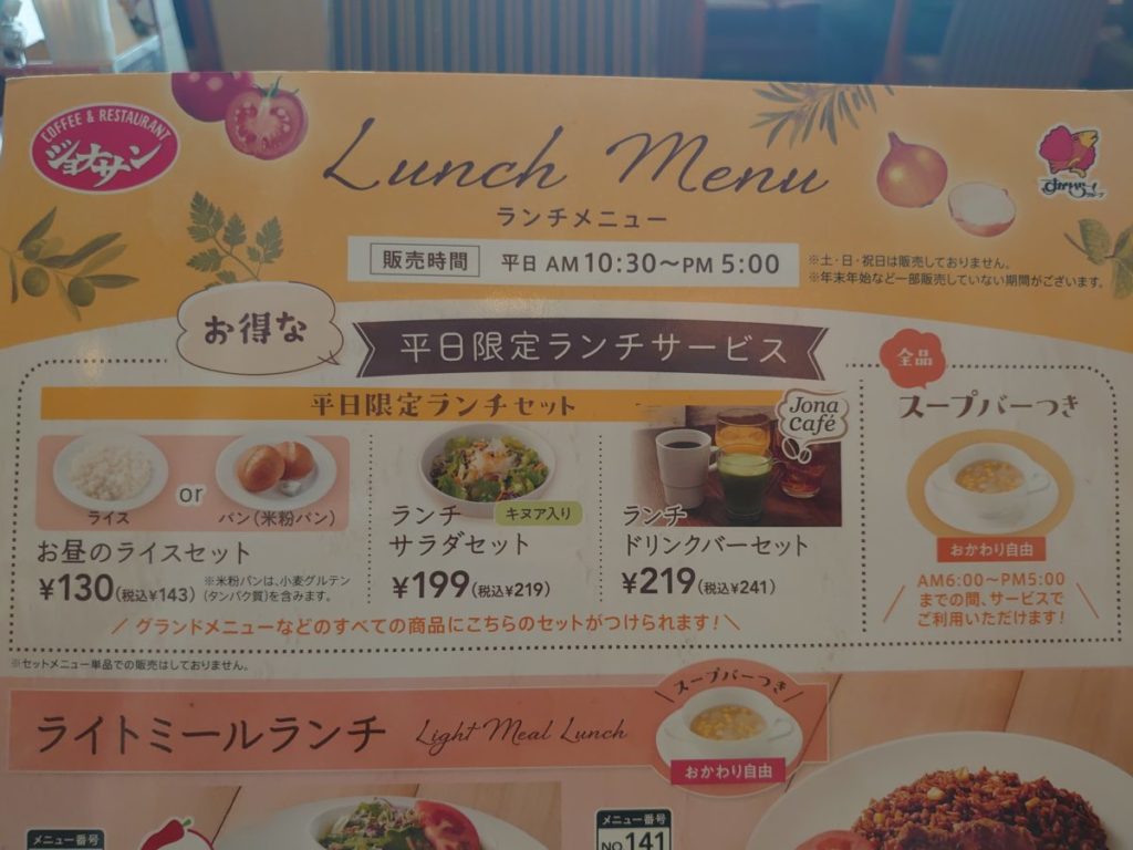 その他、メインとサイドを選ぶジョナ得ランチや、プチメニューを3種類選ぶ昼プチセットといったドリンクバーが標準で付いてくるセットも。