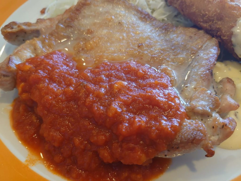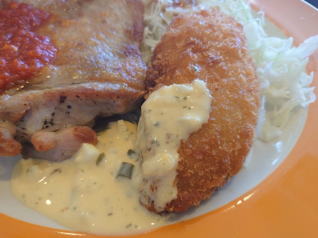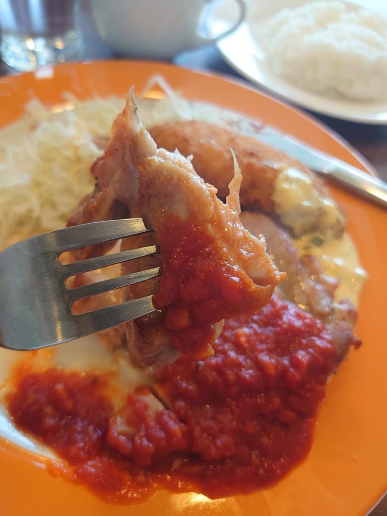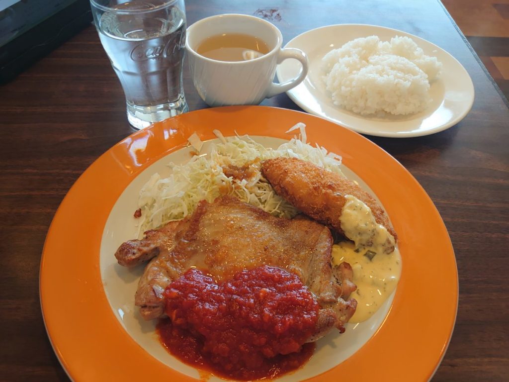 板橋区大山のファミリーレストラン「ジョナサン板橋大山店」で、日替わりランチセット(チキングリルトマトソース&白身フライ)を。