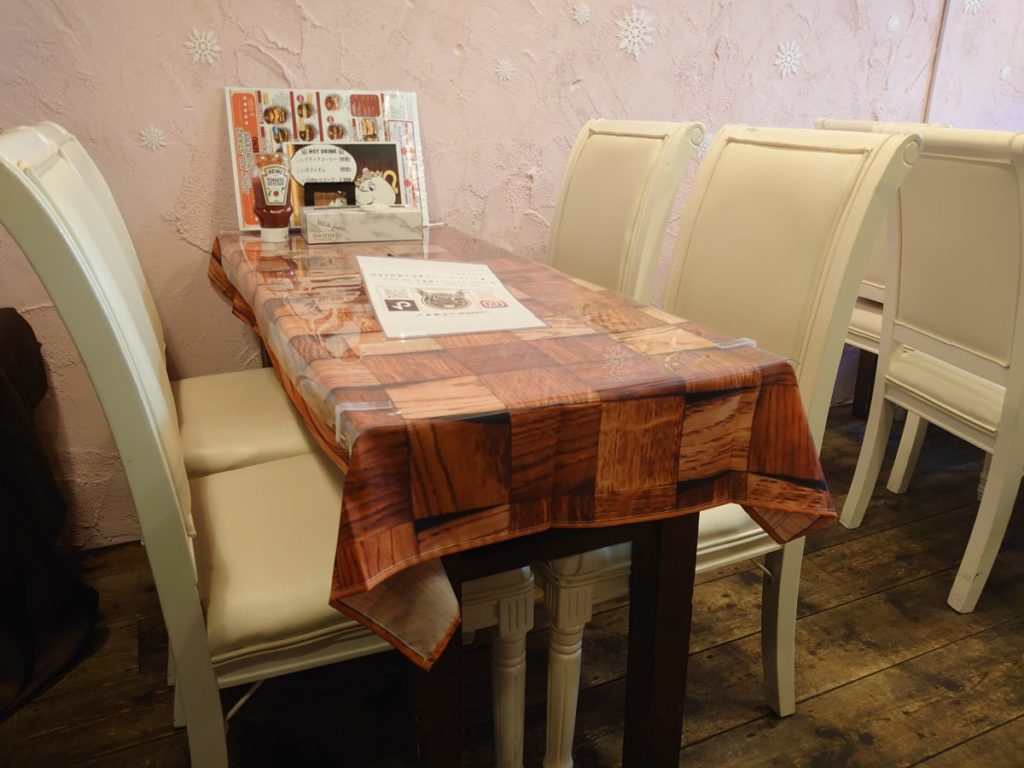 4人掛けテーブル席が2組と2人掛けテーブル席が1組。