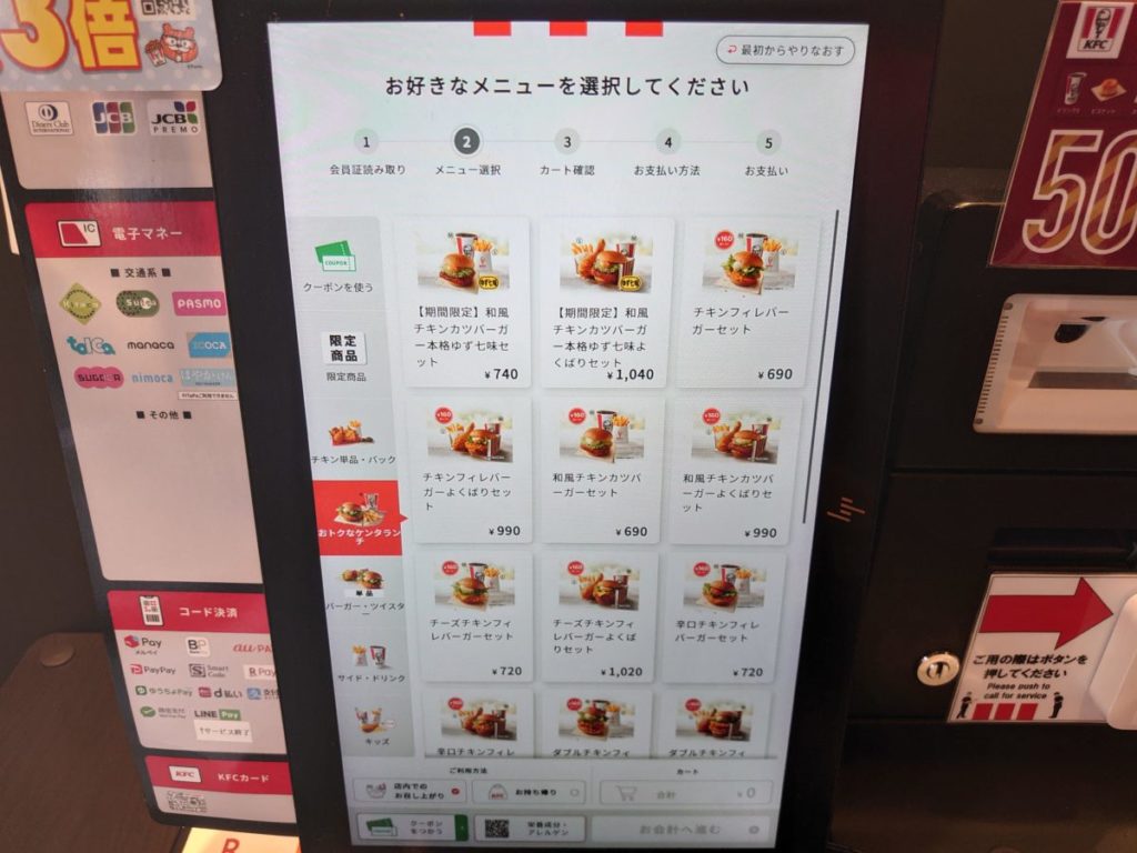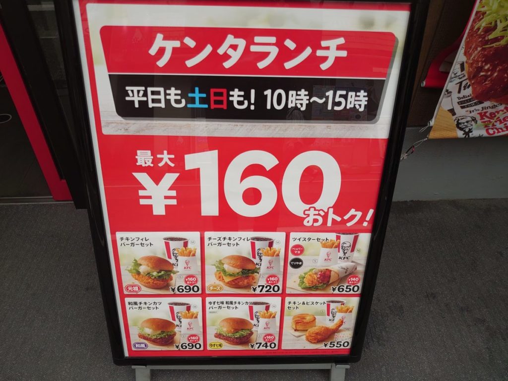 10時から15時販売のケンタランチがお得との案内に惹かれて入店しました。