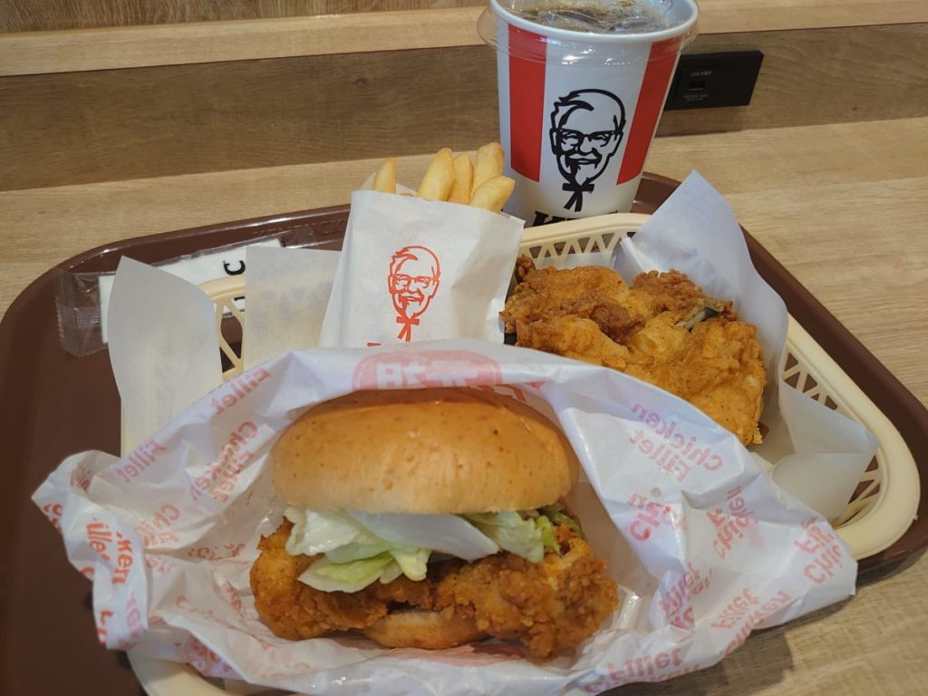 板橋区大山の「ケンタッキーフライドチキン遊座大山店」で、ランチにチキンフィレバーガーよくばりセットを。