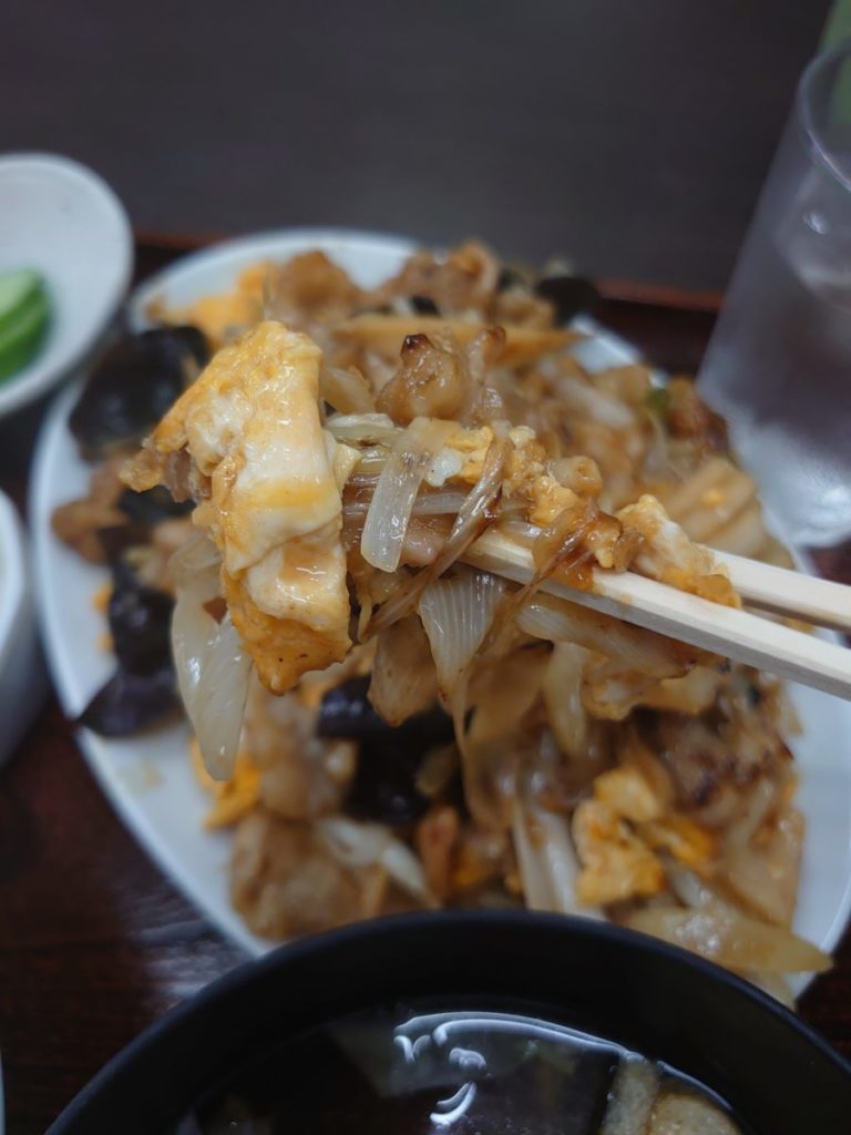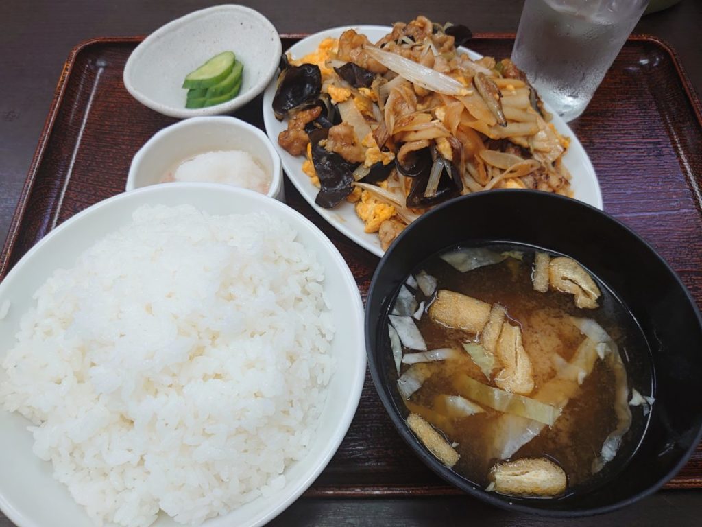 前回訪れた時は一番人気メニューの五目うま煮定食をいただいたので、今回は二番人気の豚肉玉子炒め定食を注文しました。