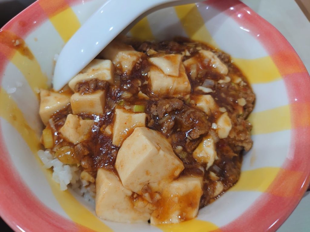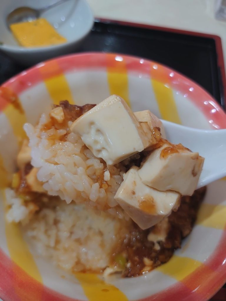 麻婆丼は木綿豆腐がとろとろ。