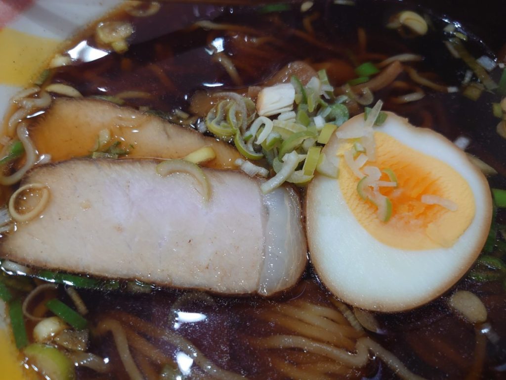 具はメンマに肉肉しいチャーシューが2枚と半分カットのゆで玉子と充実。