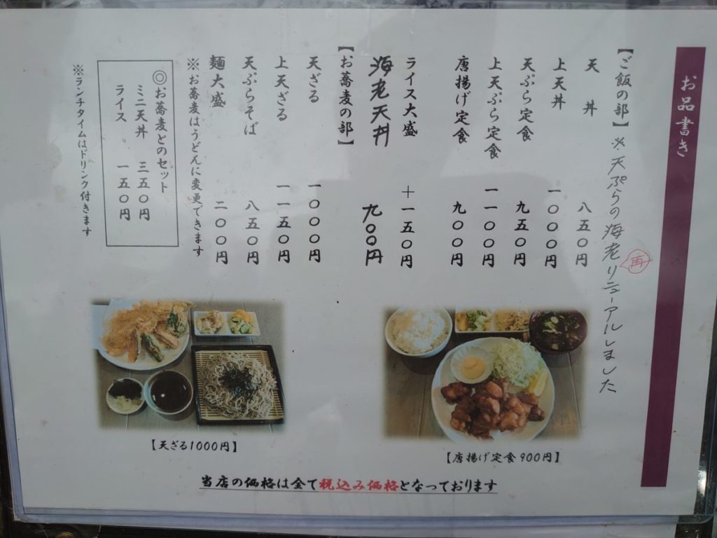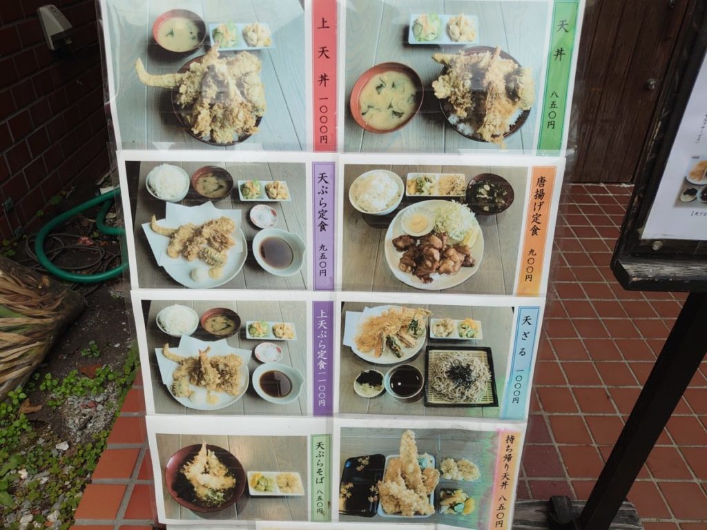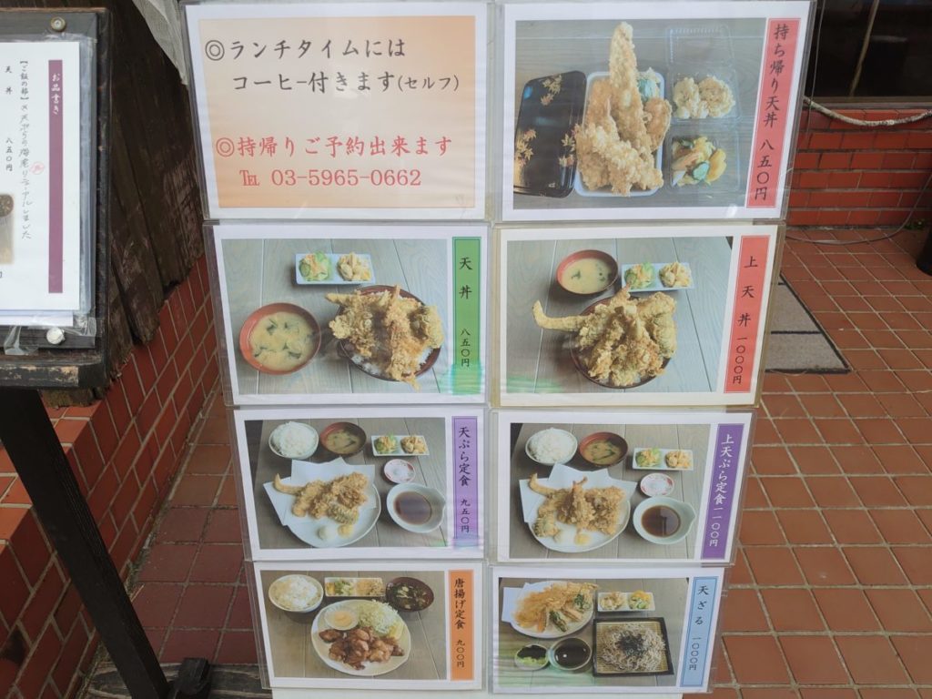 川越街道を歩いていたら、偶然、天丼や天ぷら定食のランチメニューの看板を発見。