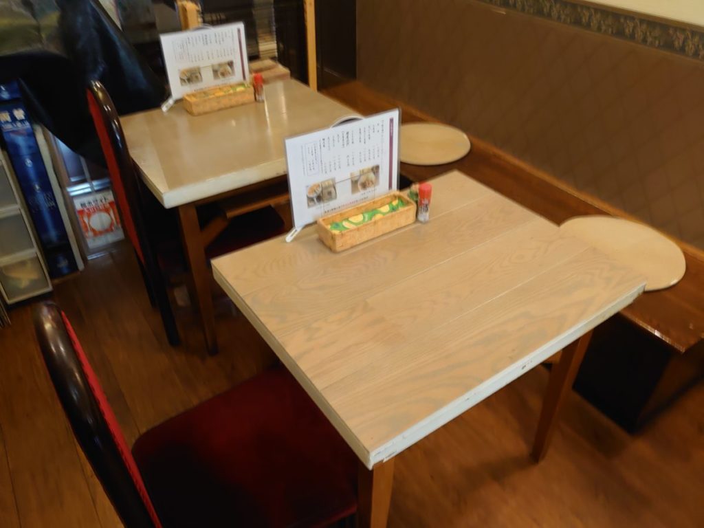 座席は2人掛けテーブル席がメイン。