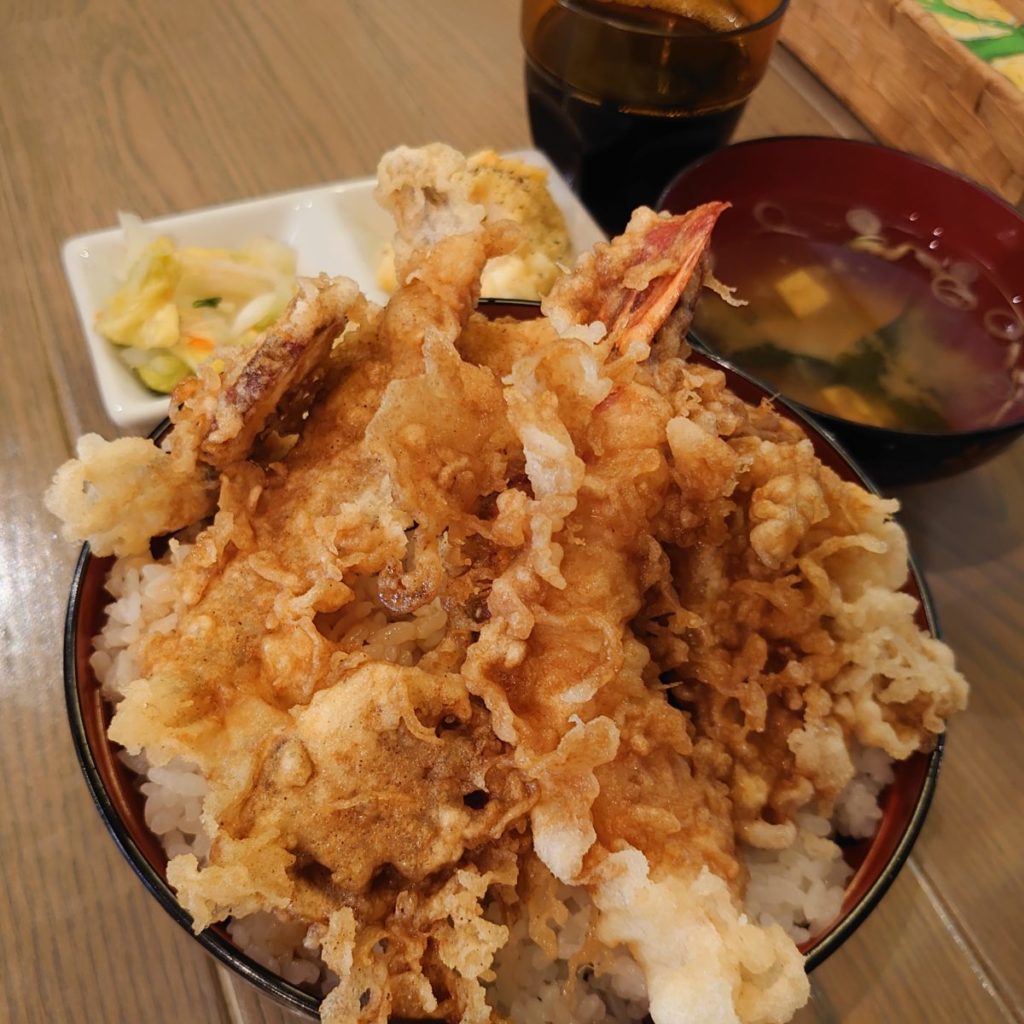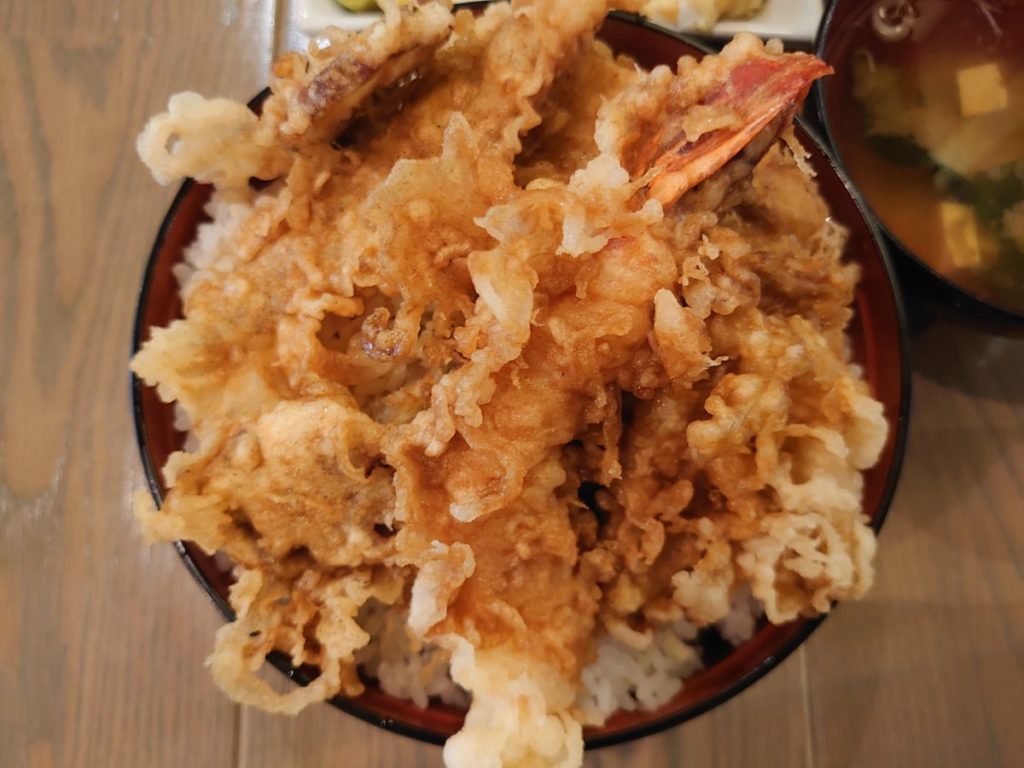 大きい器に天ぷらがモリモリの天丼が着丼。