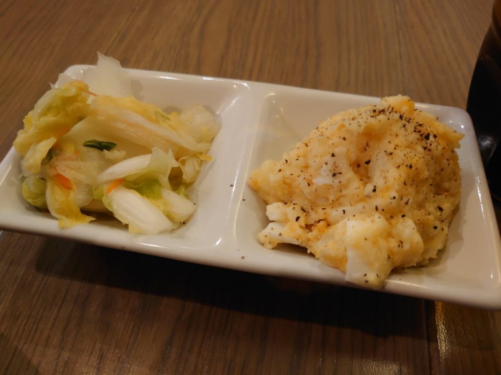 小鉢は漬物とポテトサラダ。
