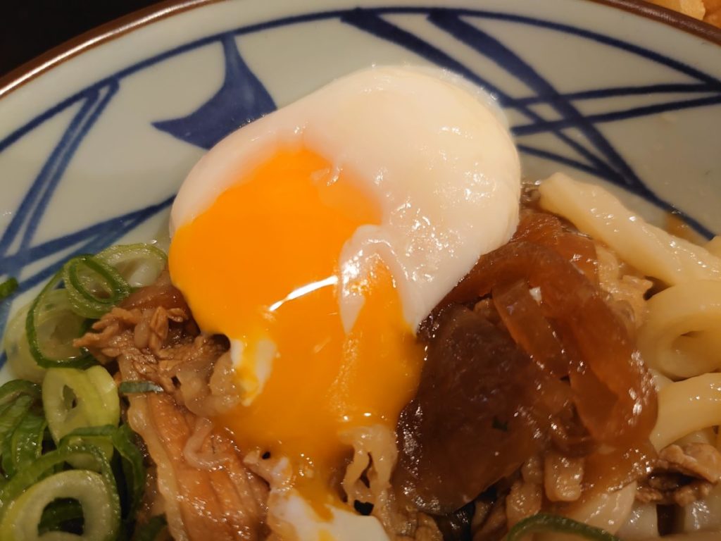 普段ならとろ玉を注文するところですが、お店舗限定メニューの肉たまぶっかけうどんが気になり、並サイズで注文しました。
