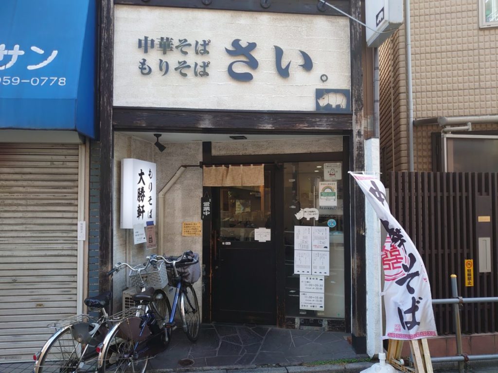 さすがにこんな暑い日ならラーメン店に並んでないだろうと思い、ランチタイムに行列をよく見掛ける中華そば・もりそば店「さい。」へ。