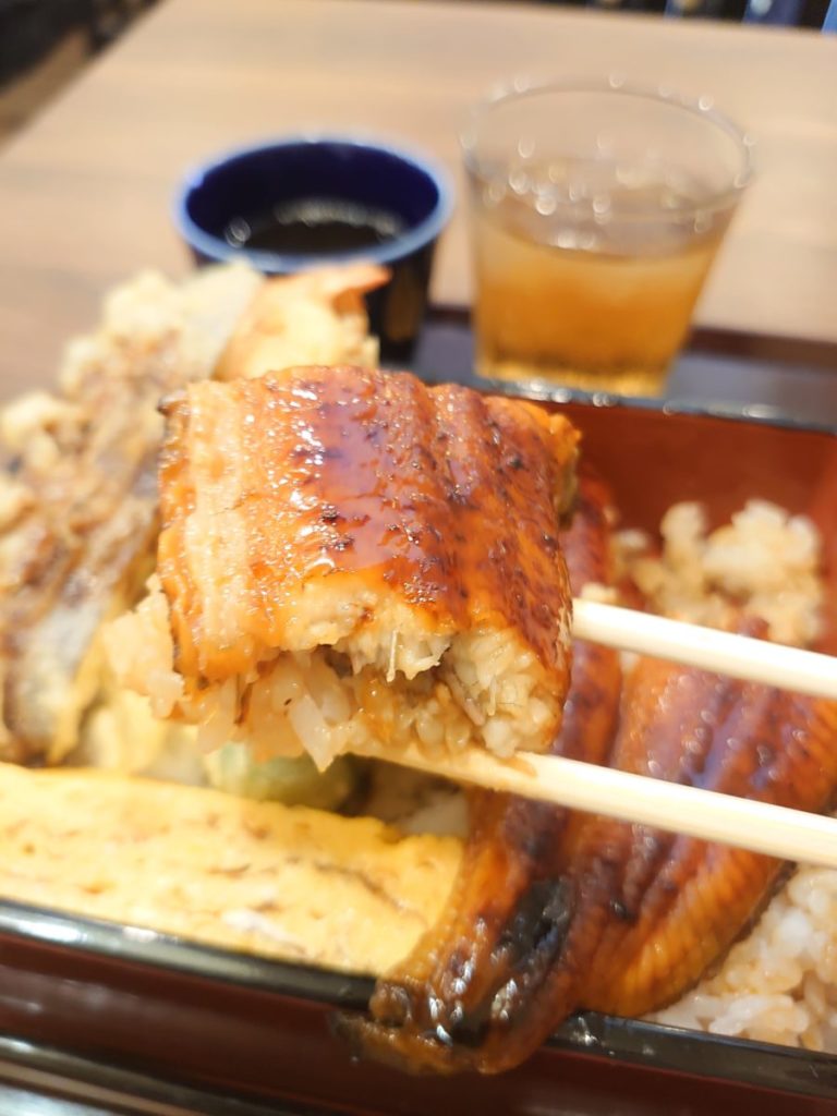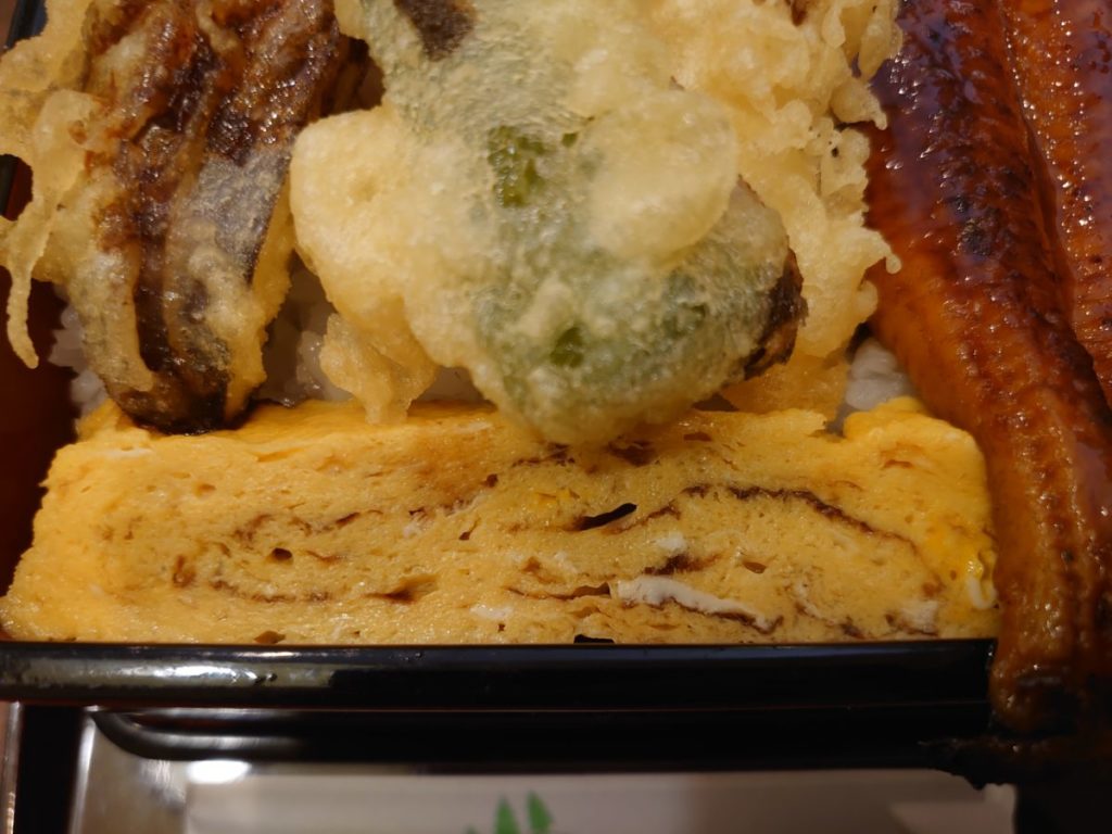 お重の左側がてん重、右側がうな重の初めて目にした贅沢お重。