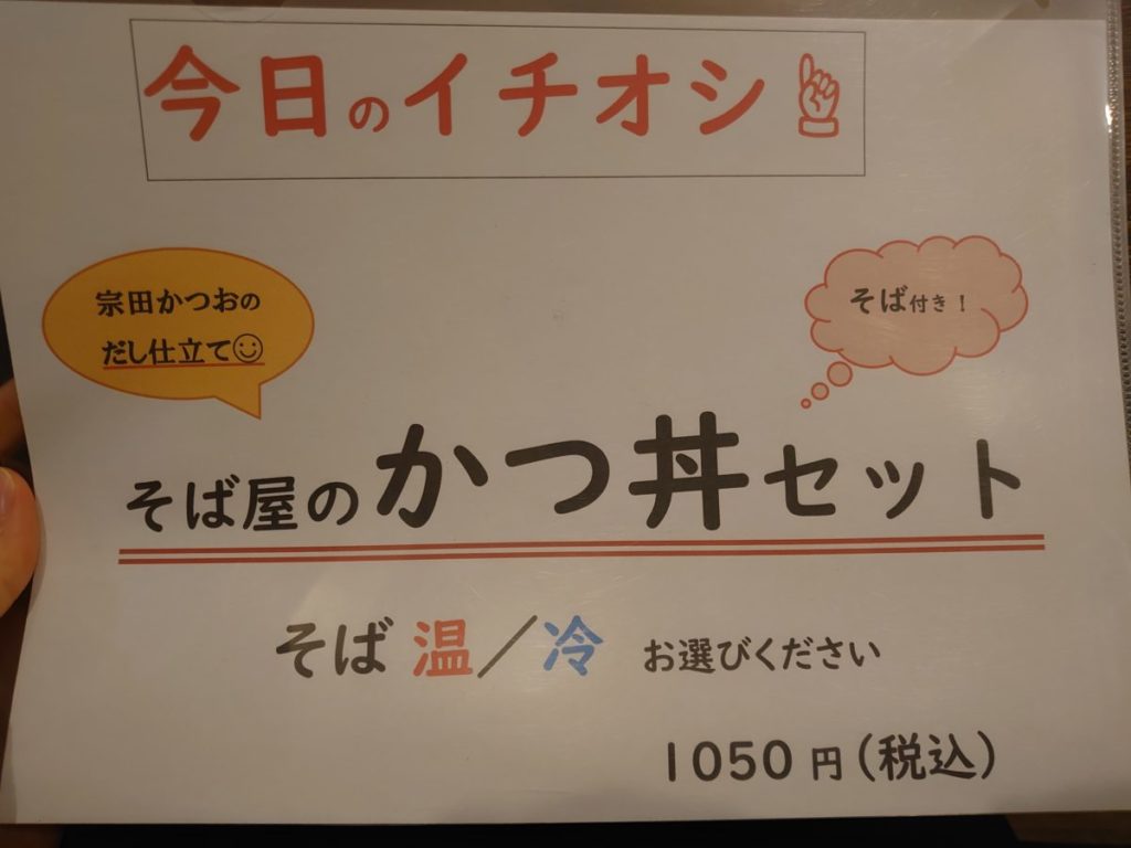 今日のイチオシとして案内されていたそば屋のかつ丼セットを注文。