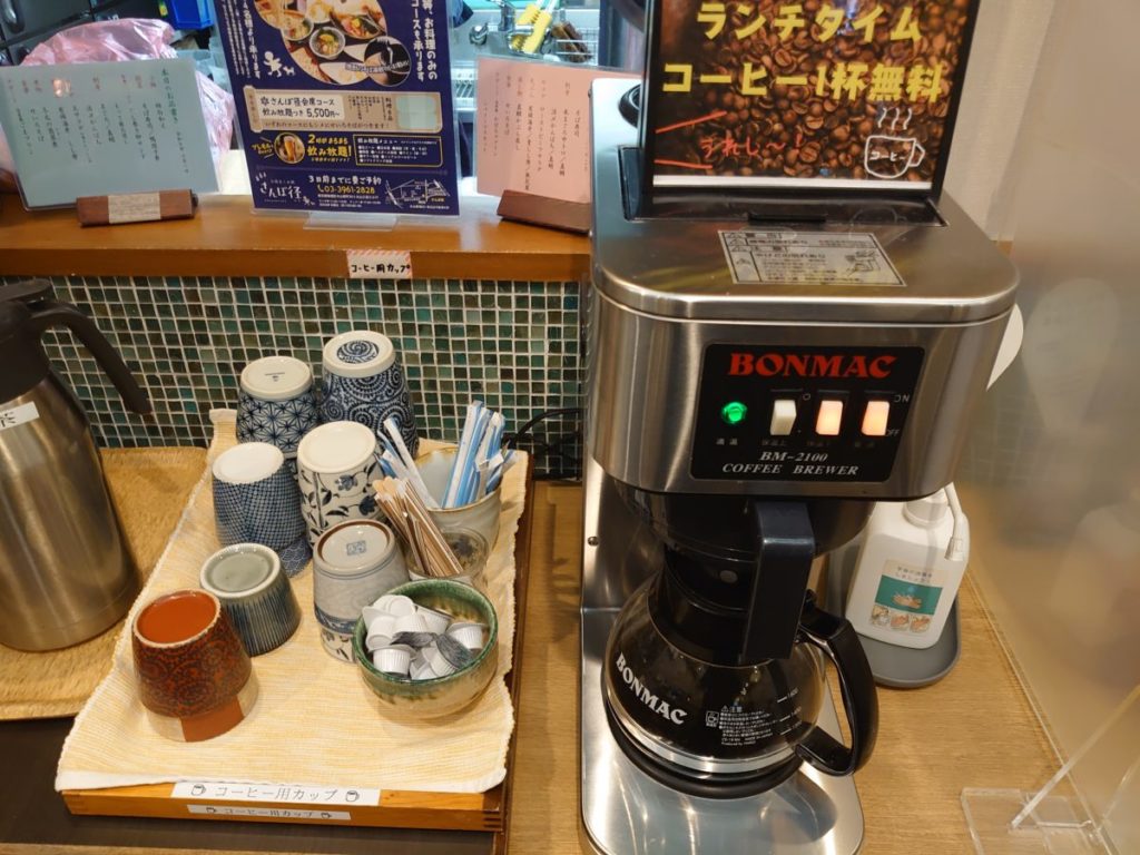 会計時にセルフサービスでコーヒー1杯無料なのを思い出し、いただいていくことに。