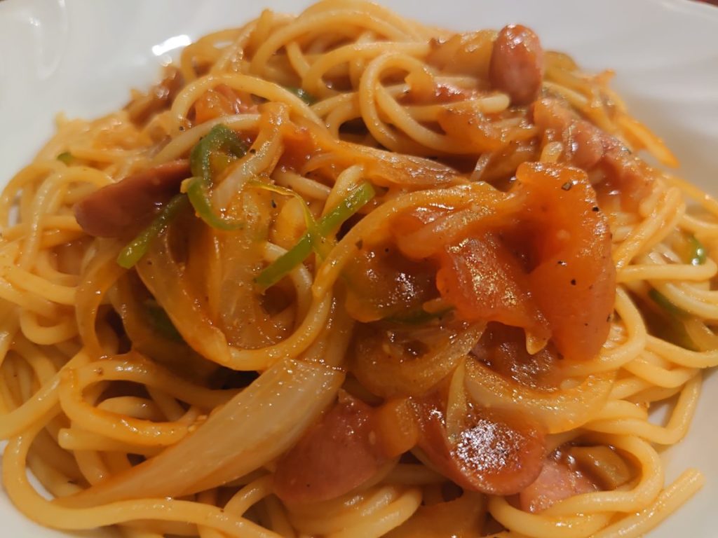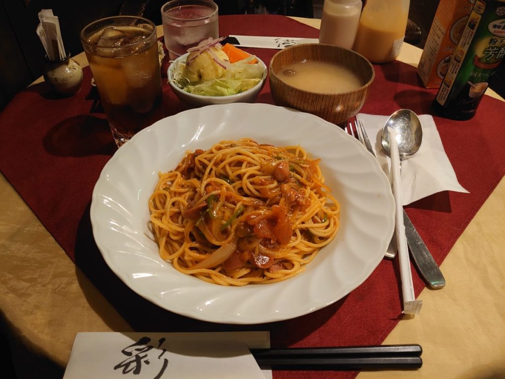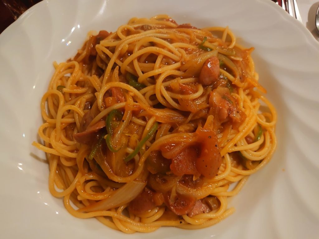 前回ハンバーグをいただいたので、今回はスパゲッティーの中からナポリタンを注文しました。