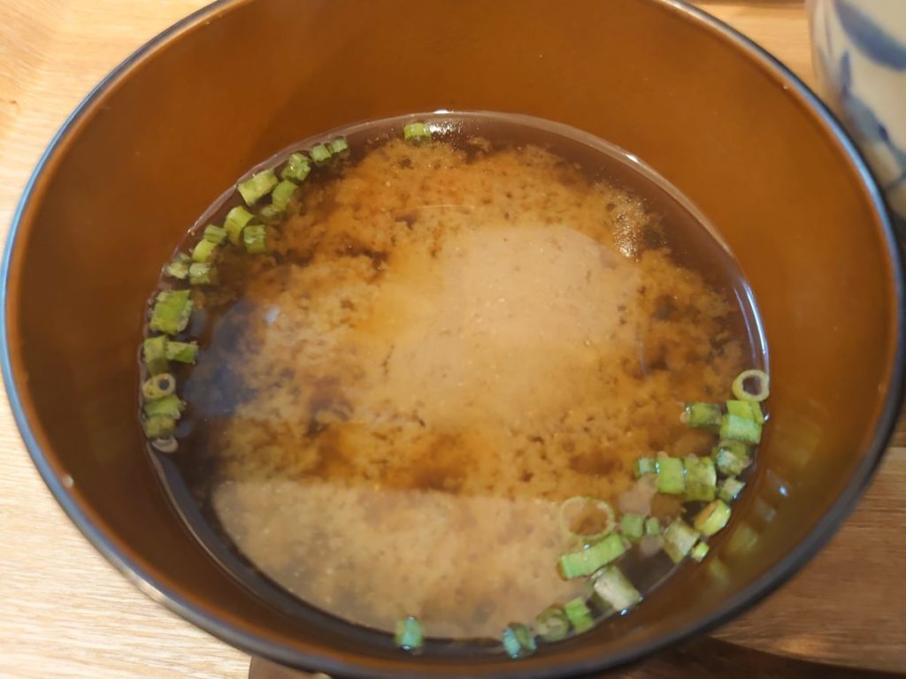 赤みそのみそ汁を飲み干して席を立ちました。