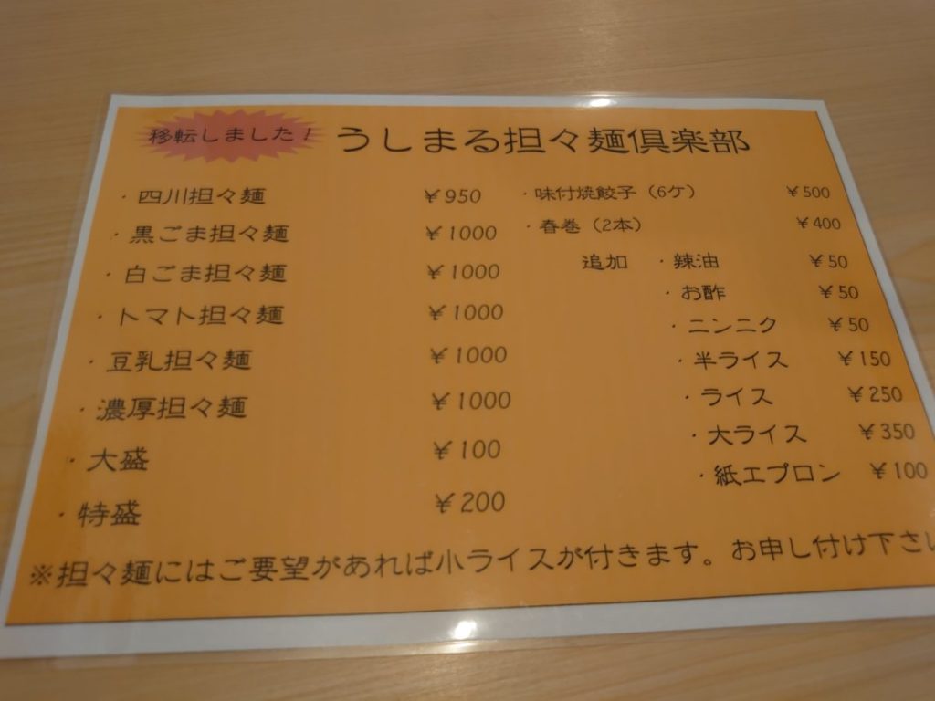 さらにバス停前にあった担々麺屋さんのメニューをいただくこともできます。