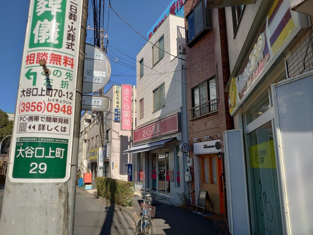 薬局が並ぶ通り沿いにあります。