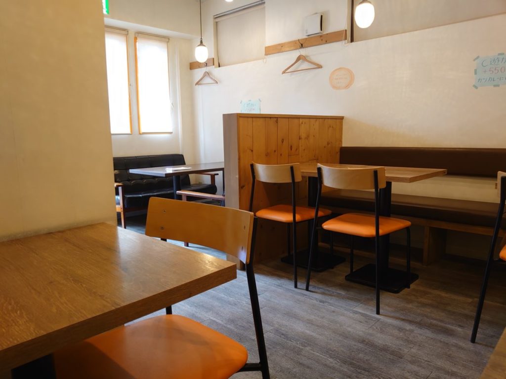 片側ソファのテーブル席の他、座面が低い両側ソファの席もありました。