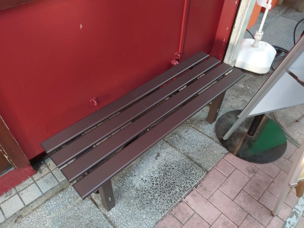お店前の2人くらい座れるベンチでいただくこともできます。