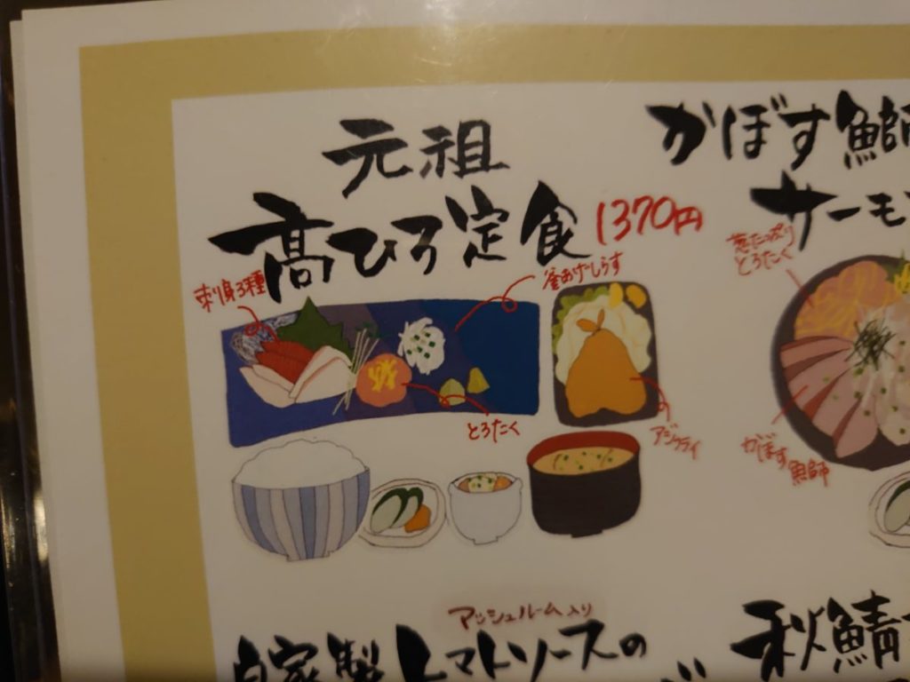 今回は人気メニューの中から元祖高ひろ定食を注文しました。