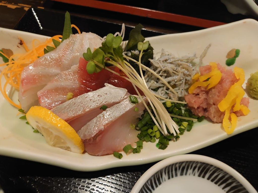 刺身は一切れが厚切りで食べ応えあり。