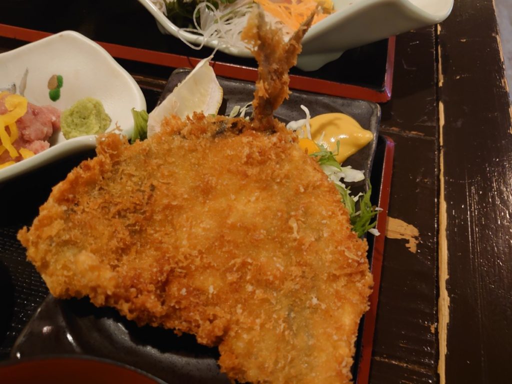 アジフライは衣が厚くてザックザク。