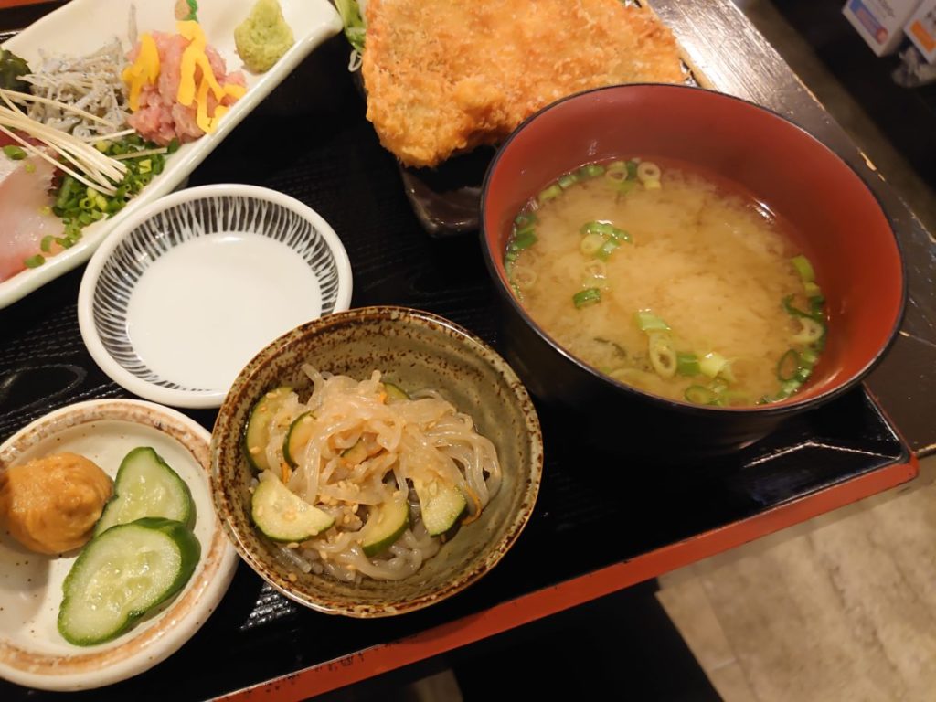 この日は〆サバ刺身と鶏天南蛮定食。