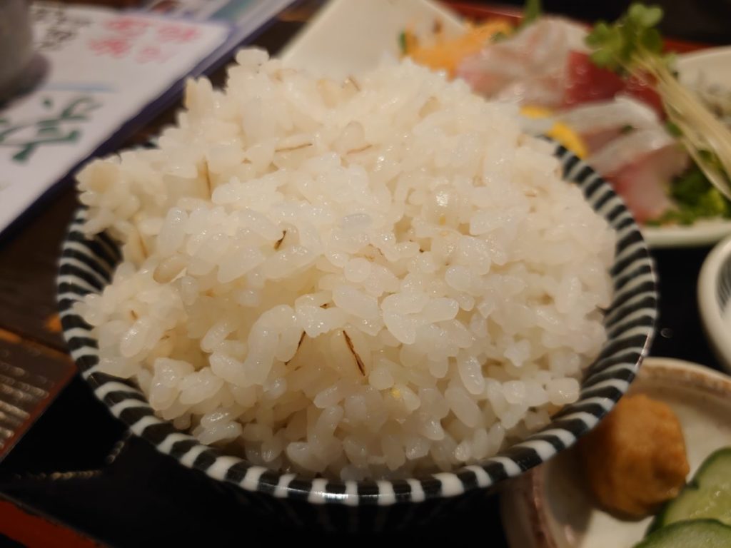 ご飯は麦入りでした。