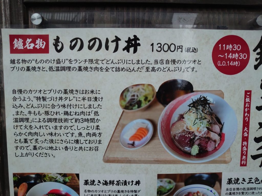 板橋区大山の藁焼き和食居酒屋「鑪(たたら)」で、ランチにもののけ丼のご飯大盛りを。
