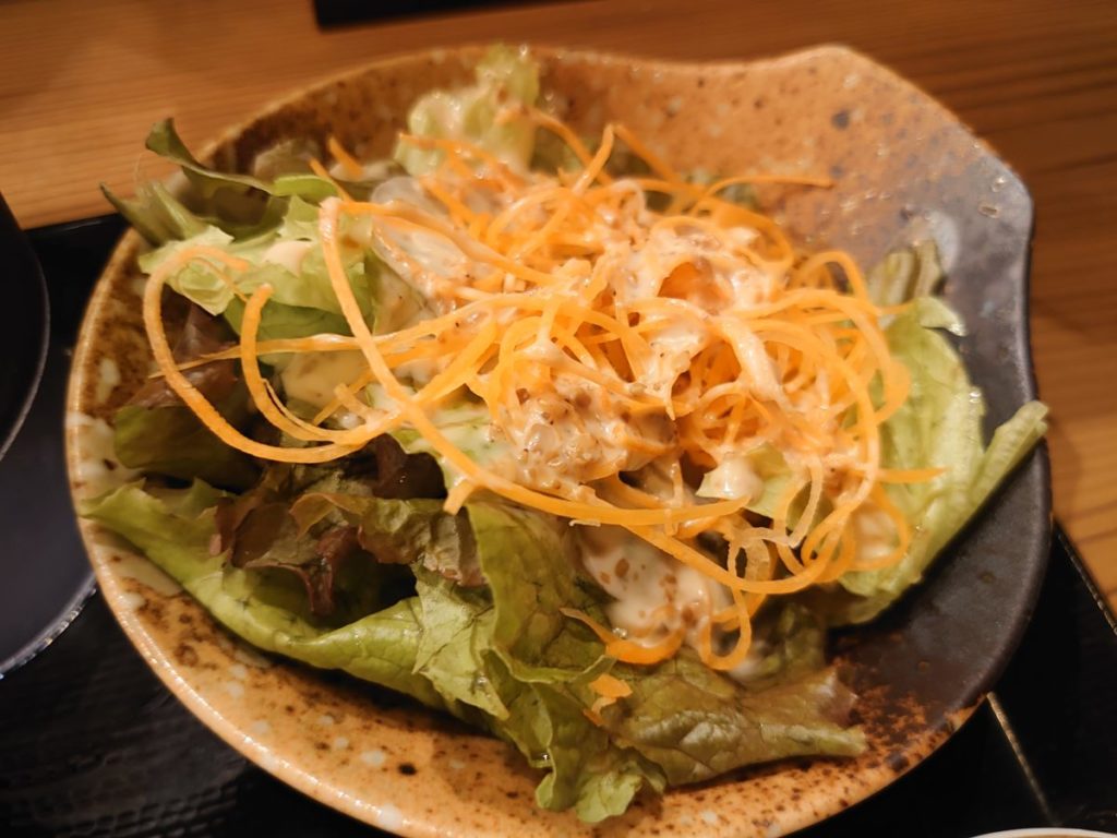 サラダはレタスと人参の胡麻ドレッシング掛け。