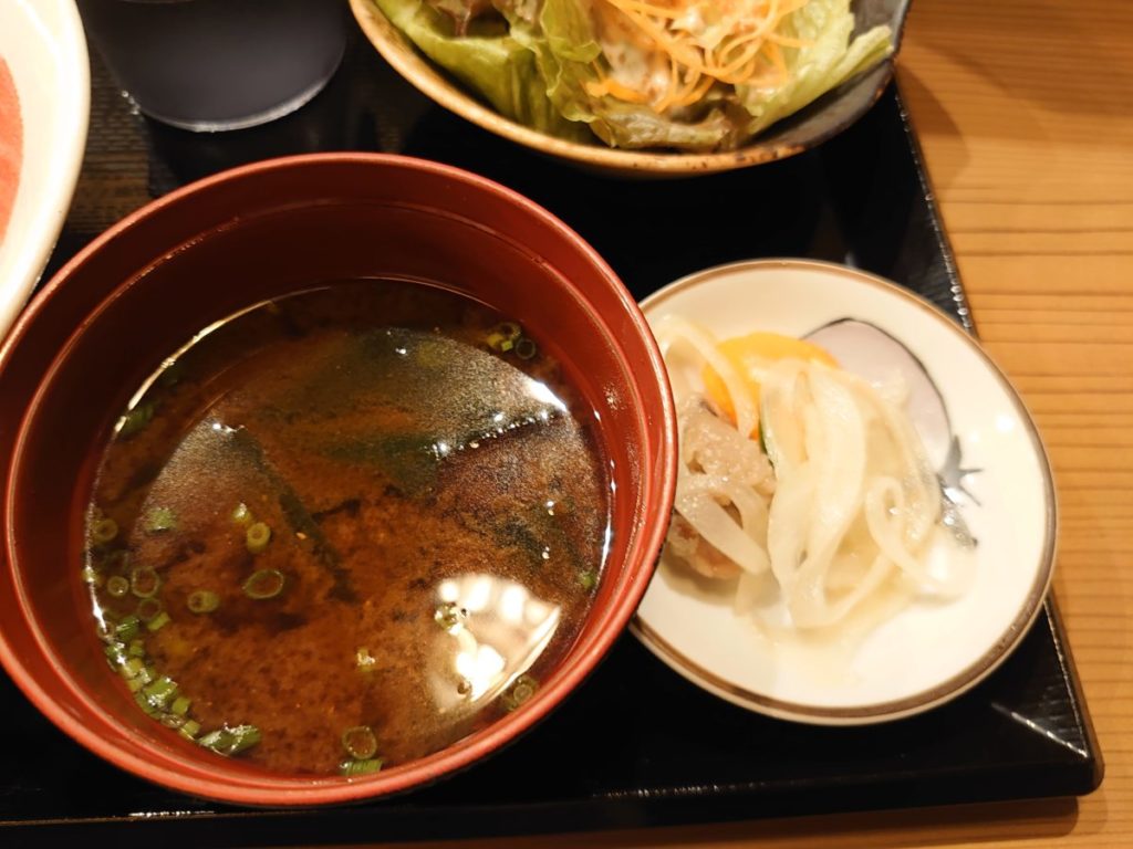味噌汁は赤味噌のシンプルな味噌汁でした。