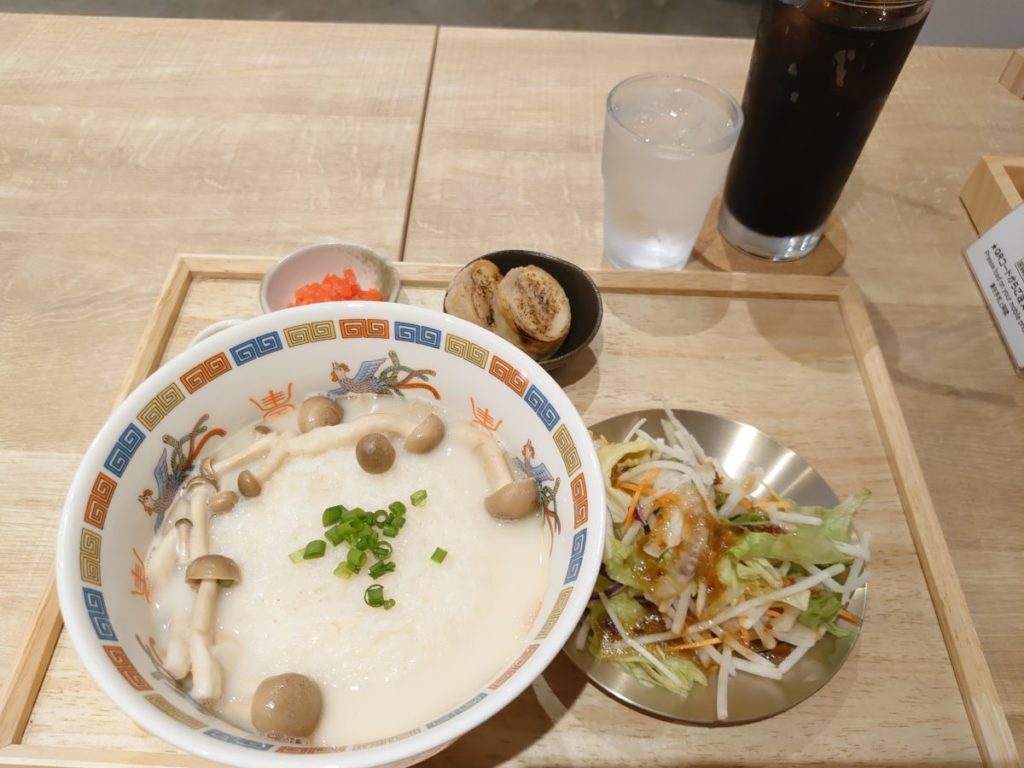 名物らしい餃子が入った餃子定食も気になりましたが、その半額くらいのスープご飯定食の方が初めて見るメニューで、より気になりました。
