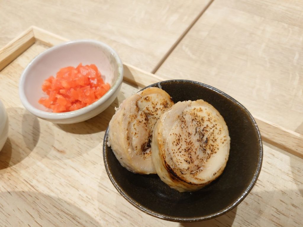 小皿に入っていたチャーシューと紅生姜を丼へ投入しました。