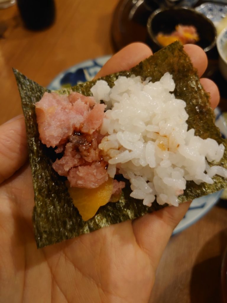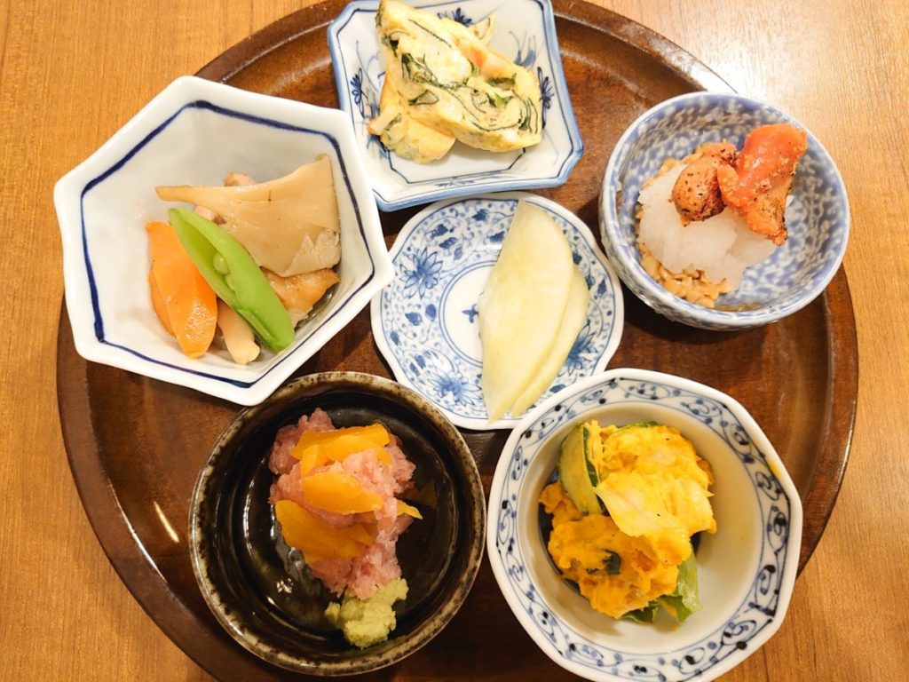 セルフで作るとろたく巻きはもちろん、他の小鉢もご飯が合います。