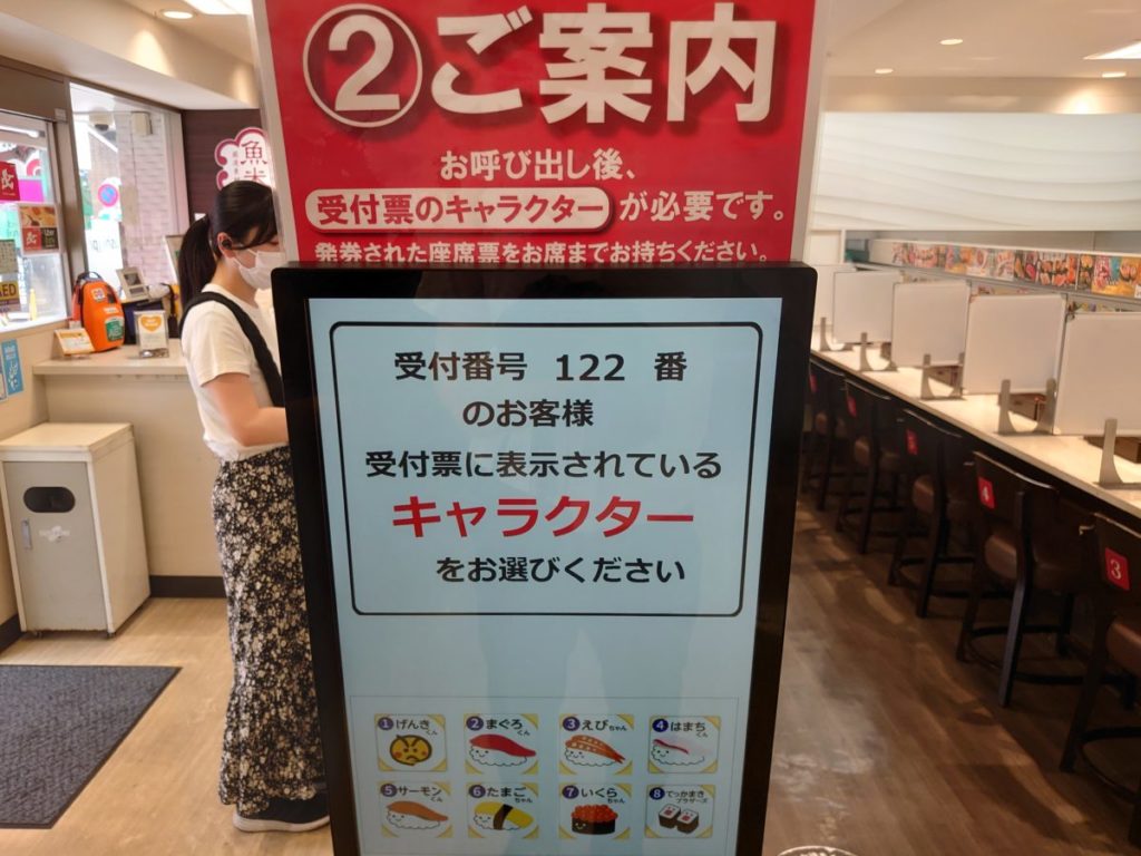 キャラクターをタッチして座席票兼会計用伝票を受け取って、指定された座席へと向かいます。