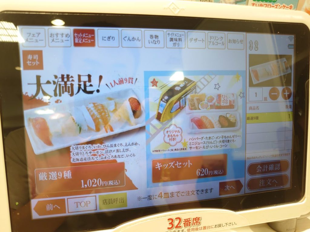 寿司セットメニューは厳選9種のみ。