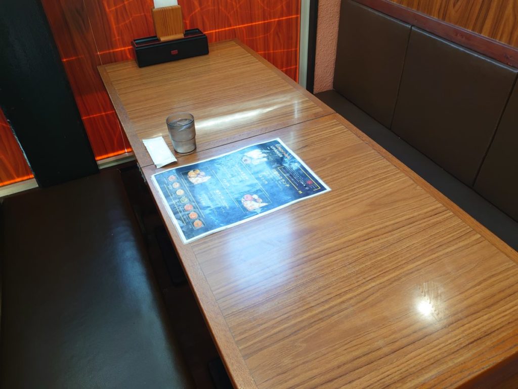 2人掛けには既にお客さんが食事をしていたので、1人用席に座ろうとしたところ、広い6人掛けを案内してもらえました。